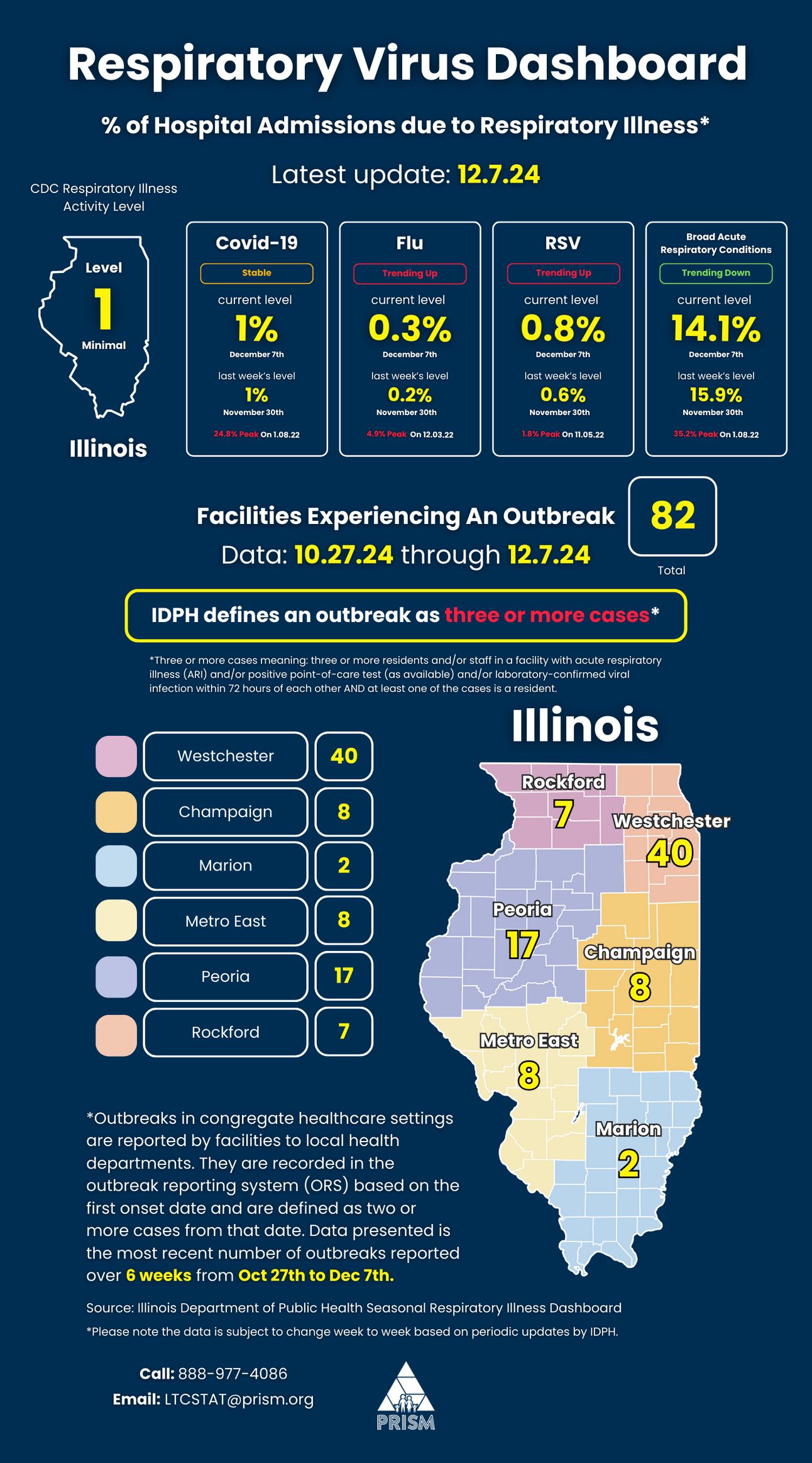 Disclaimer: The following statement serves as a disclaimer from Prism Holistic Care Ltd., DBA Prism Health (“Prism”), an independent physician practice and laboratory (CLIA ID 14D0889595). The services provided by the LTC STATeam were previously made possible through an agreement with the Illinois Department of Public Health (IDPH). These services have now transitioned to a private payor reimbursement model. PRISM explicitly states that it does not operate on behalf of or as an agent of IDPH. Any services provided by PRISM will be billed to the resident’s insurer. Please be aware that certain services (e.g., vaccinations) are fully covered by Medicare, Medicaid, and some private insurances with no cost sharing. PRISM offers a range of other services including management consulting, staffing, laboratory, wound care, telemedicine, orthopedics, dental, vision, and health insurance services. Any services that are the financial responsibility of the facility or resident will be explicitly agreed upon prior to any party incurring any costs. This disclaimer is intended to ensure transparency, prevent misinterpretation, and avoid any confusion regarding the scope and limitations of our services. For more information and clarification regarding the services provided by the LTC STATeam, please contact Prism’s Department of Compliance at [email protected].