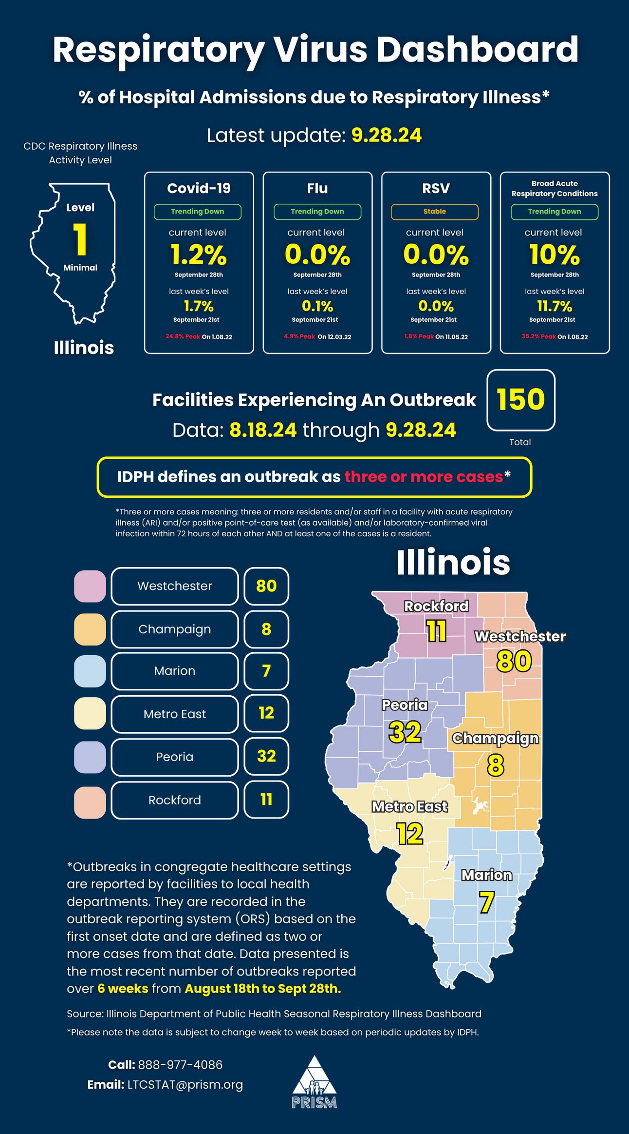 For additional information on the updated IDPH guidelines, including outbreak management strategies, visit the IDPH guidance on Preventing and Controlling Acute Respiratory Illness Outbreaks in Skilled Nursing Facilities.